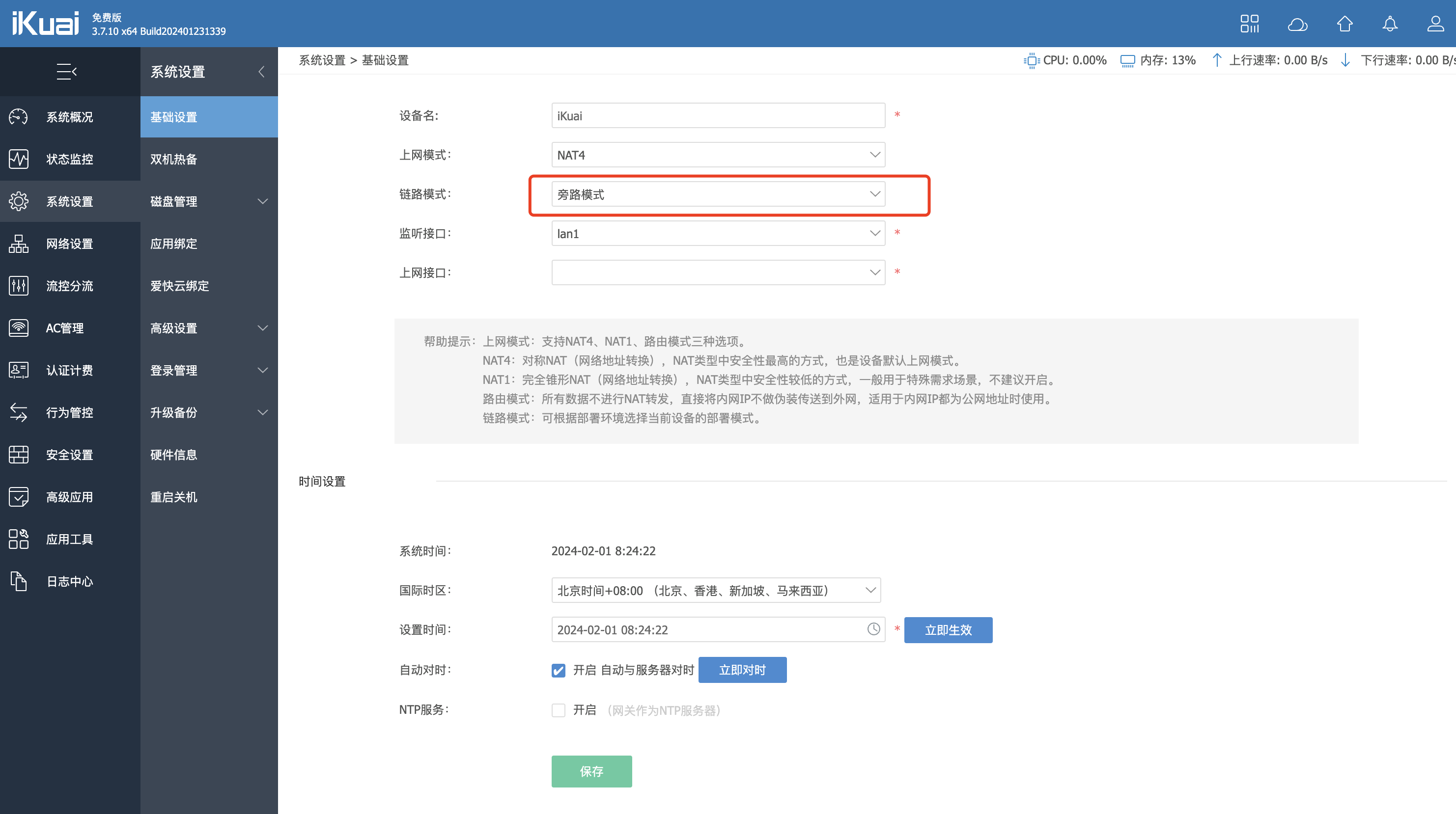 系统设置->基础设置