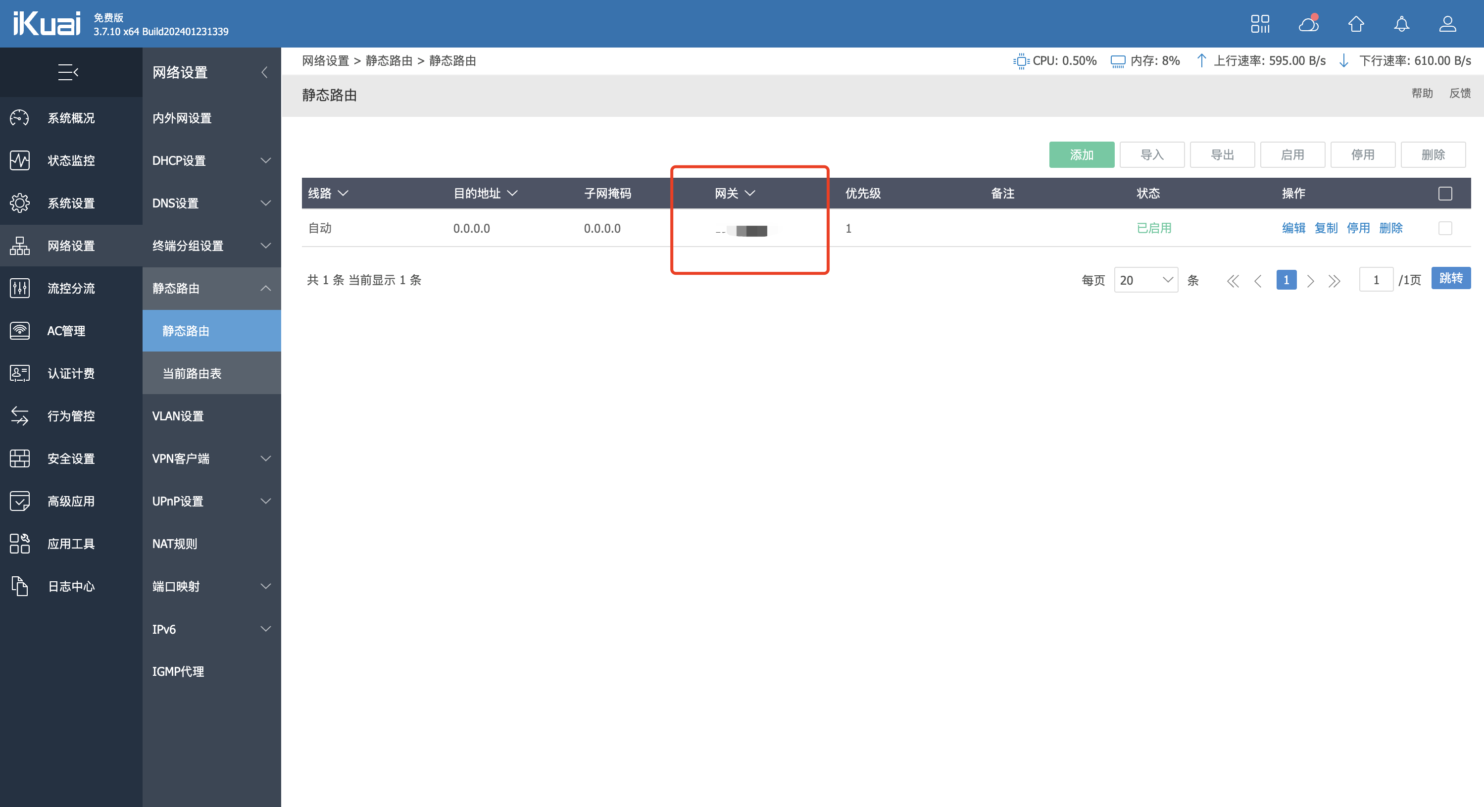 网络设置-> 静态路由