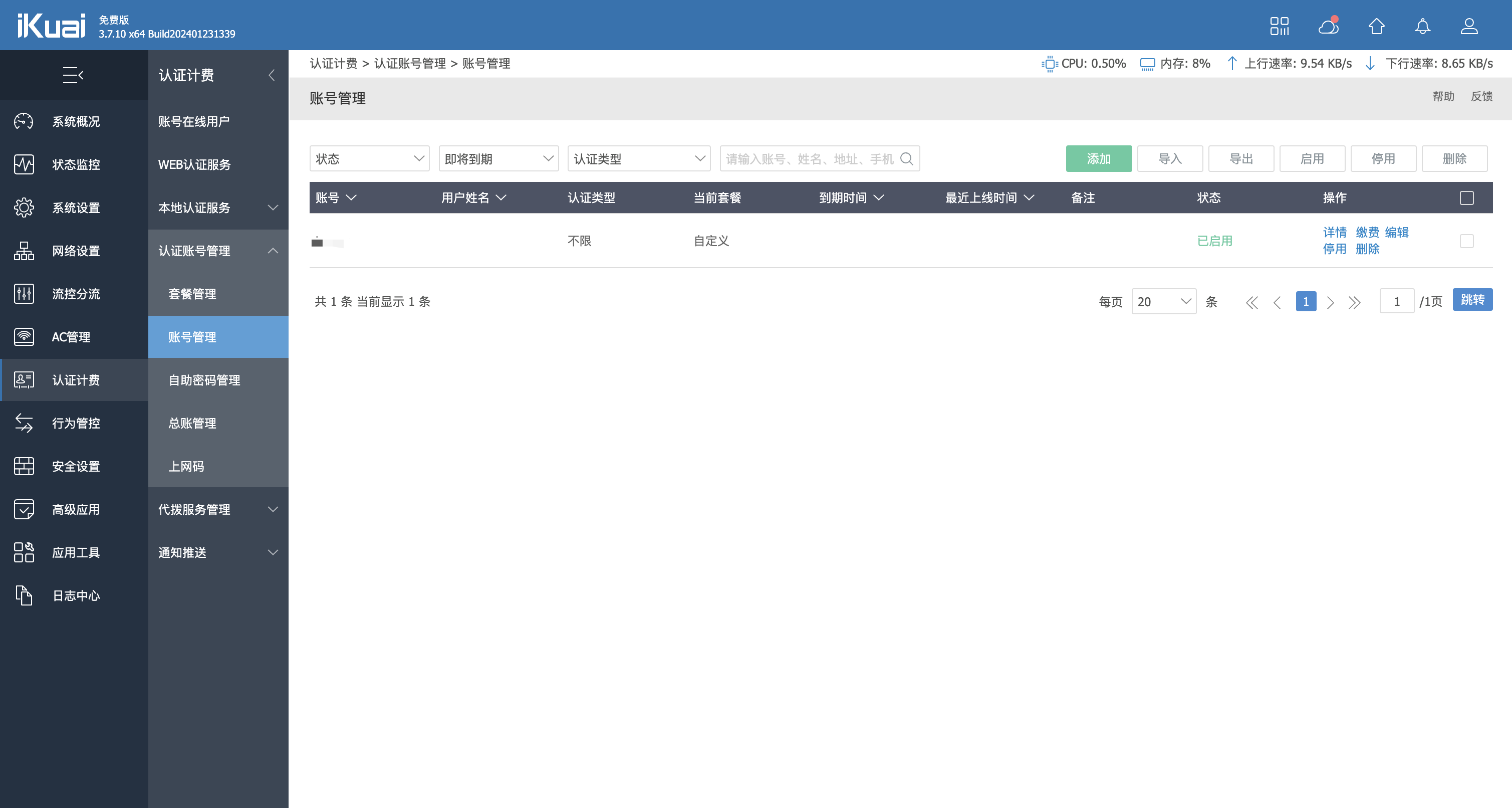 认证计费->认证账号管理->账号管理