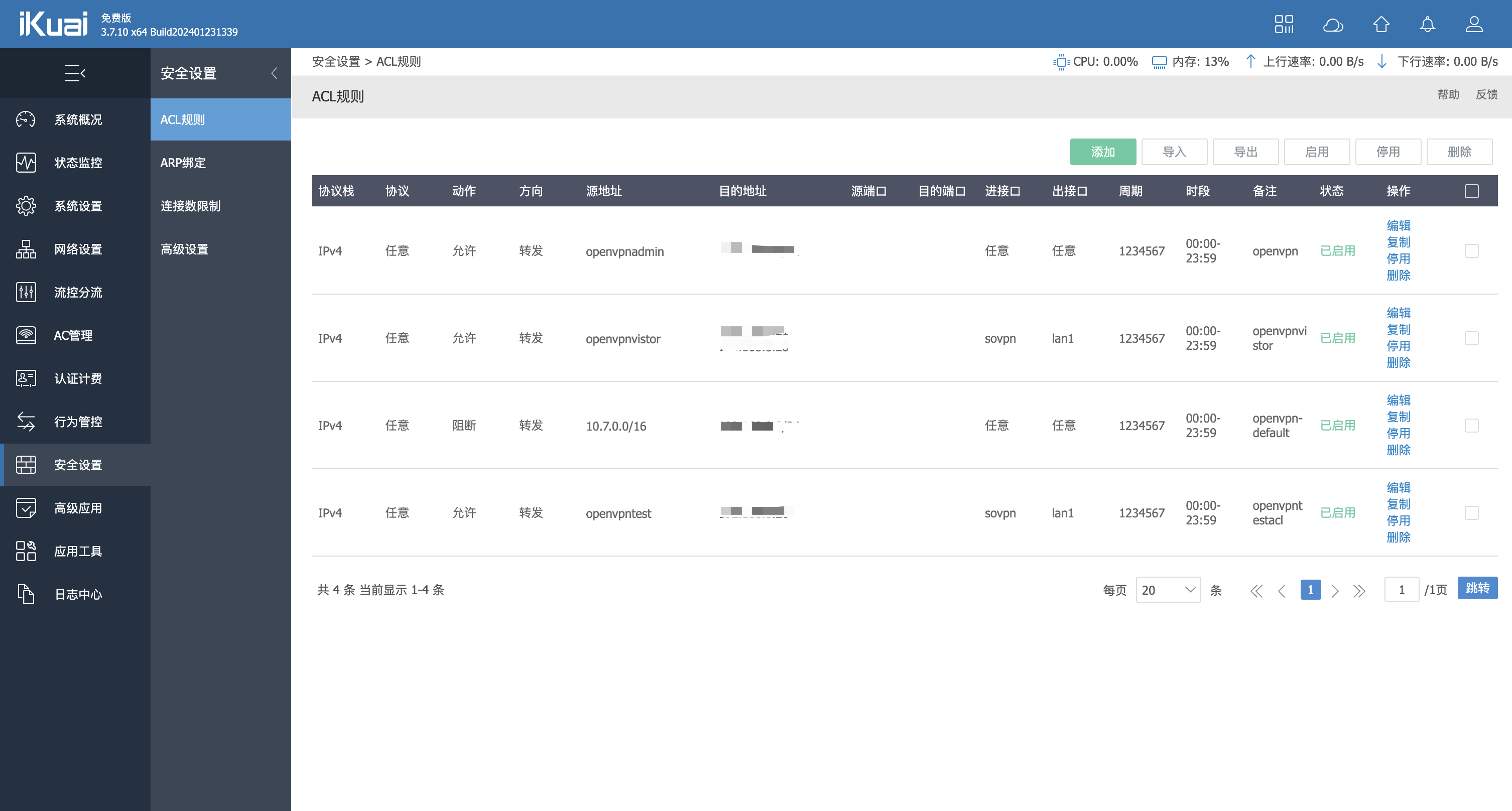 安全设置-> ACL 规则