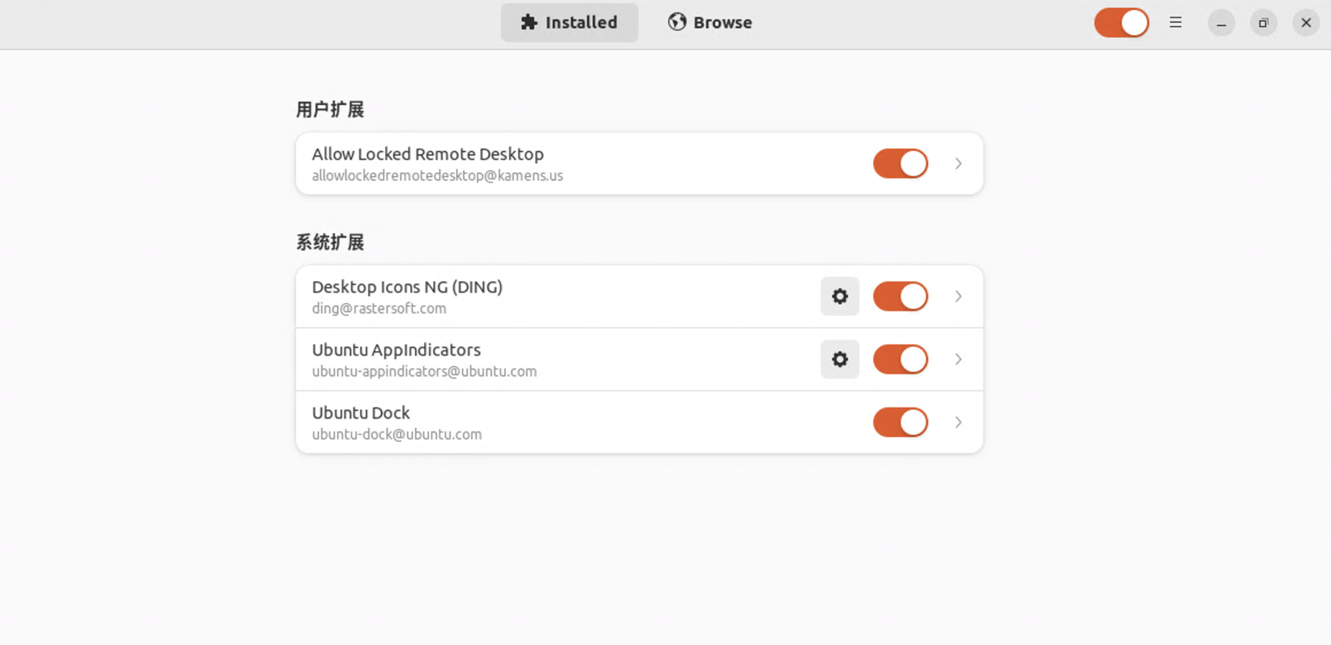 sudo apt install gnome-shell-extension-managerGNOME Shell Extension Manager 是一个用于管理 GNOME Shell Extensions 的工具。这是一个非官方的应用程序,设计的目标是使得搜索和安装 GNOME Shell 扩展在不使用 Web 浏览器的情况下也能顺利进行。